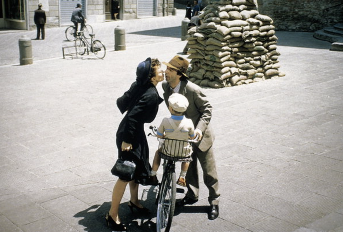 결국 도라는 약혼자를 버리고 구이도와 결혼하며, 아들 조수에를 낳습니다. 이 시기의 영화는 밝은 색감과 경쾌한 음악으로 가득하며, 전쟁의 그림자가 닥치기 전의 유토피아적 행복을 느낄수 있습니다.